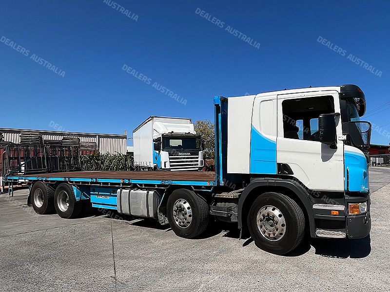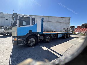 This 2007 Scania P310 8x2 Low Roof Tray Top Truck is currently listed for sale in a live online auction. The auction closes at 8:00pm AET this Thursday, 20th of November 2025 unless extended by late bids.