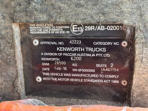 This 2018 Kenworth K200 Aerodyne 6x4 Prime Mover is currently listed for sale in a live online auction. The auction closes at 8:00pm AET this Thursday, 23rd of October 2025 unless extended by late bids.