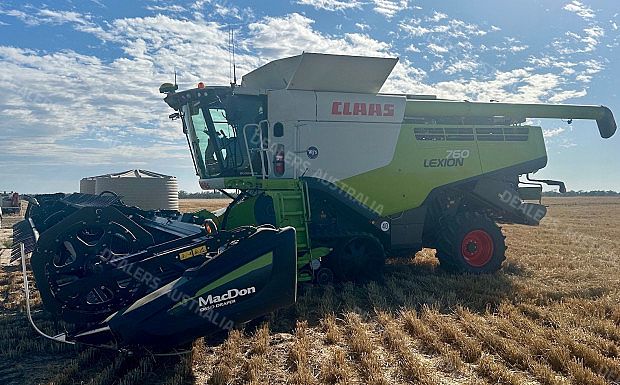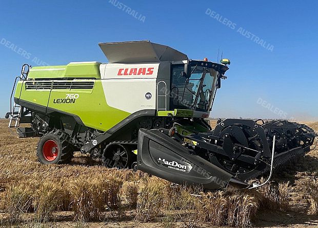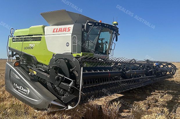 Claas 760 Lexion Combine Harvester, 2016 build, TerraTrac, 2040 engine hours, 1360 rotor hours, (approx another 150 hrs to do), 30 inch tracks 80%, 600/65R28 steer tyres 80%, straw chopper, MacDon D65 Front, 2016 build, 40ft, draper, top cross auger, one owner machine, well maintained, available mid November 2024, very good condition, located near Moree NSW, price includes GST