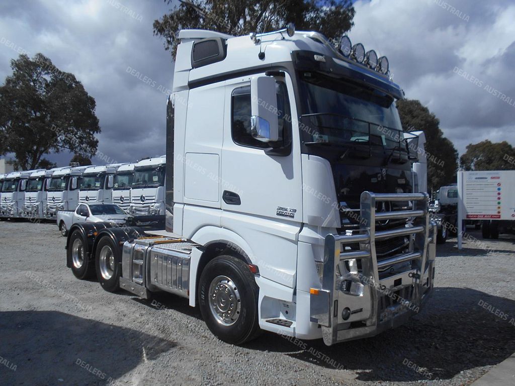 2019 MERECEDES-BENZ ACTROS 2663 ##DRIVERS EDITION ONE OF 40 MADE##, STREAMSPACE 2.5CAB, SOLOSTAR CONCEPT (LOUNGE & EXTENDED FOLD UP BED), LOUD- SPEAKER SYSTEM, REAR WALL STORAGE CABINETS, TWIN FRIDGES, MICROWAVE, SPOT LIGHTS ON ROOF BAR, REMOTE-PTO HYD, ICE PACK BUNK COOLER, SUPER SINGLES ON THE STEER, STAINLESS TRIMS WITH RUNNING LIGHTS, HEAVY DUTY POLISHED BULL BAR, 16LT 630HP E6 ENGINE, POWERSHIFT G330 12 SPEED AUTO TRANS, DIFF LOCKS, LOW 472,691KLMS, 106T RATED, JUST BEEN SERVICED.