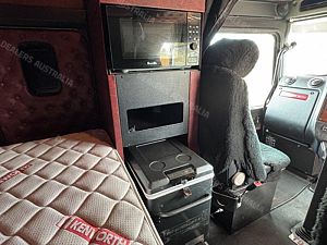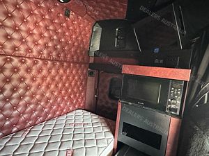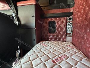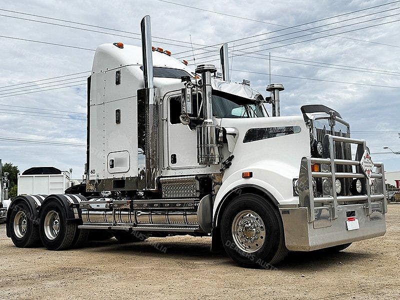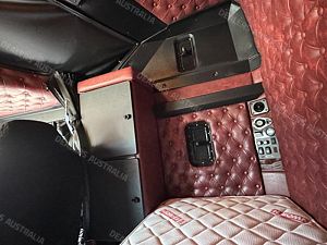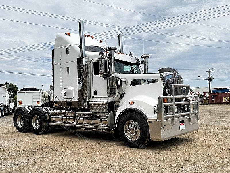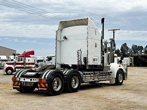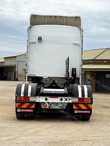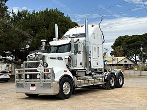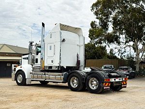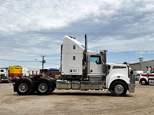 2015 Kenworth T909 6x4 Prime Mover, Cummins ISX E5 Engine @ 550Hp, 18 Speed Road Ranger Transmission, Meritor RT46-160 Rear Axles on Kenworth Air Glide Air Bag Suspension, Polished Alloy Bull Bar with LED Spot Lights, Plastic Bug Off, Stainless Steel Drop Visor, Dual Exhaust 10 Stud Alloy Wheels with Super Singles to the Steer, Square Tanks, Stainless Steel Drive Guards, Aero Kit with Wings, Holland Fixed QRTT, Custom Air Bunk Cooler, Chassis Deck Plate, Maroon Diamond Stud Trim, Air Ride Drivers Seat, Wood Grain Dash, Radio Cd Player, A/C, Power Steering, Turbo Timer, Microwave,