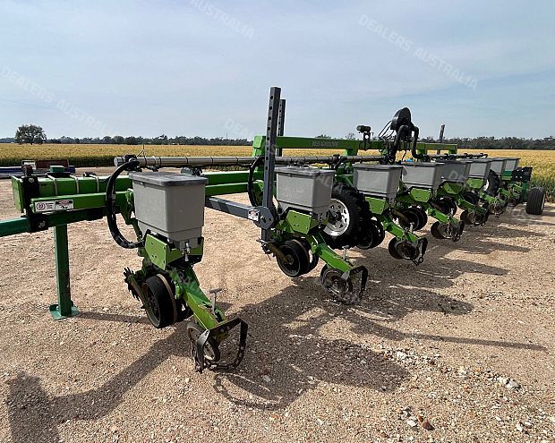 Boss Precision Planter, 2021 build, 12 metre rigid toolbar, 8 x Boss DX50 planter units, 60 inch (1.5m) row spacing, 3 point linkage attachment, 1.6 bushel seed boxes, Precision Seed Solution electric metering, Precision Planting 20/20 screen, trashwhippers, covering chains, end tow kit, good condition, near Goondiwindi QLD, includes GST