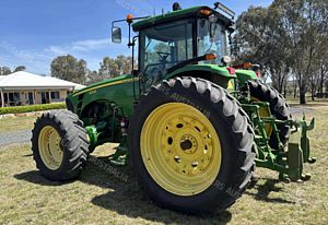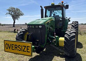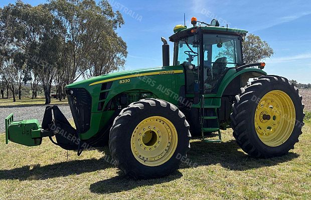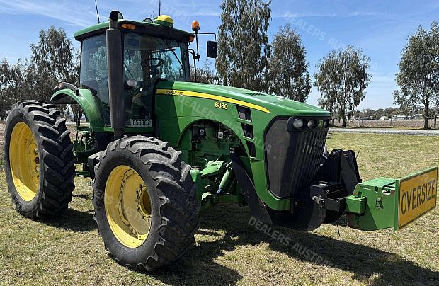 John Deere 8330 Tractor, 270 horsepower, 6778 hours, 16 speed powershift, front 480/80R34 tyres 20% rubber, rear dual 480/80R50 tyres inner 65% outer 95% rubber, 4 remotes, 3 point linkage with quickhitch, 1000 rpm PTO, GPS gear and front axle spacers not included, good condition, near Toowoomba QLD, includes GST