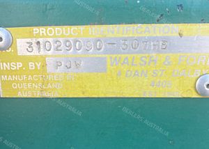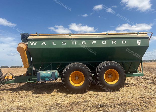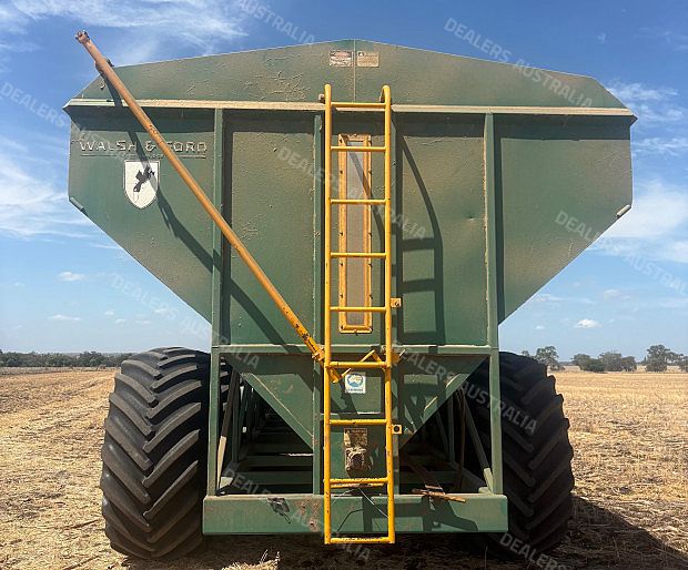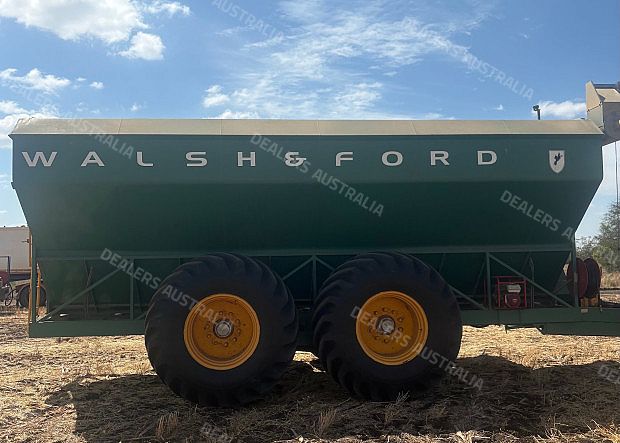 Walsh & Ford Chaser Bin, 2013 build, 30 tonne, 15 inch unload auger, bin divider, roll over tarp, 1000 or 540 PTO or hydraulic drive, slotted and solid floor slides, 400 litre water tank with fire fighter unit, cameras, internal and external ladders, side delivery chute, good bin, only selling due to upgrade, good condition, near Clermont QLD, includes GST
