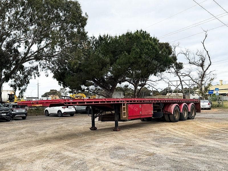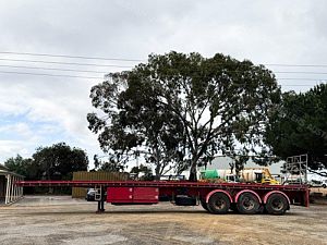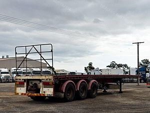 Well-presented CIMC 22 pallet flat deck trailer with container twistlocks, Ringfeder setup, and full load restraint gear — ready for freight or container work.