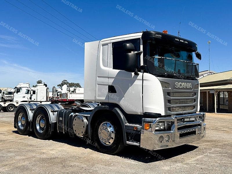 Tidy Scania G440 prime mover with PTO hydraulics, JOST ballrace turntable and full highway setup — ready for B-double or general freight applications.