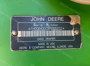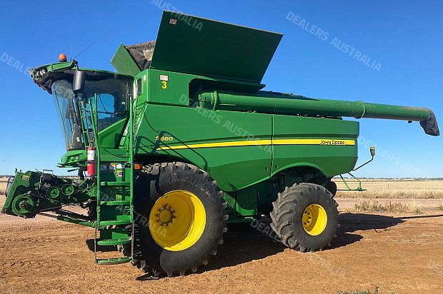 John Deere S680 Combine Harvester, 2013 model, 2586 separator hours, 3427 engine hours, dual 650/85R38 drive tyres, 750/65R26 steer tyres, straw spreaders, UHF, auto steer valve, small wire concaves, Trimble GPS - RTK, John Deere 640D Draper Front, draper, 40ft, sorghum fingers, available by negotiation - Comb Trailer suit farm use, good condition, near Amby QLD, includes GST