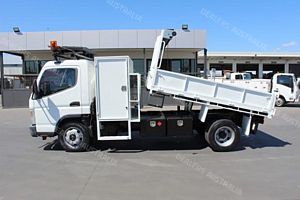 2015 Mitsubishi Canter 918 Tipper***Ex Council*** Truck Body Measures 2.95m (L) x 400mm (H) x 2.12m (W). Fitted with Drop Down Sides, Two-way Tailgate, Pull Out Tarp, Multihitch Towbar, Reverse Camera, Hand Wash Station, Two Underbody Toolboxes, Battery Isolator, Large Toolbox with Sign Rack, Amber Beacon Lights, Sign Board, Air Conditioning, Stereo, Power Windows, 5 Speed Manual Transmission, 150HP Turbo Diesel Engine, Travelled Only 153,543kms!!!