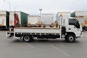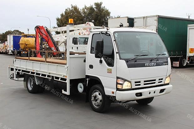 2005 Isuzu NPR 400 Tray with Crane. Body Measures 4.57m (L) x 300mm (H) x 2.4m (W). Fitted with FASSI Micro 30 Crane with 995kg Lifting Capacity at 1.5m and 635kg at 4.7m, Drop Down Sides, Tow Bar, Electric Trailer Brakes, Amber Beacon Lights, LED Lightbar as Worklight, Air Conditioning, Stereo, Power Windows, 6 Speed Manual Transmission, 150HP Isuzu Turbo Diesel Engine, Travelled Only 108,412kms!!