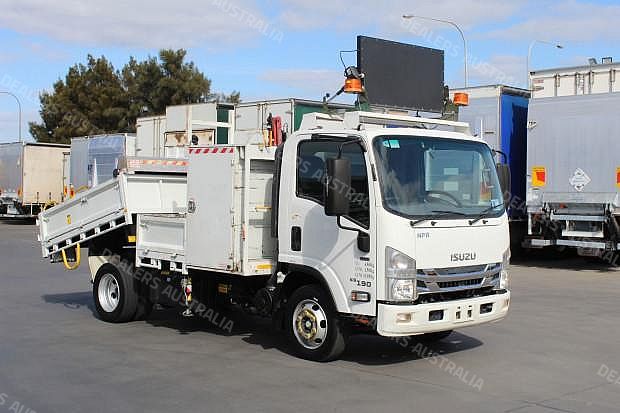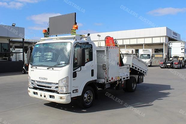 2016 Isuzu NPR 65-190 Tipper with Crane. Tipper Body Measures 1.99m (L) x 370mm (H) x 2.2m (W). Fitted with Drop Sides, Tow Bar with 50mm Ball, Ekectric Brakes, Reverse Camera, Underbody Toolboxes, Pull Out Tarp, Fassi Mircro 30 Crane, Crane Max Reach 4.7m Lifts 635Kg, Worklights, Sing Board, Amber Beacon Lights, Large Toolbox with Sign Rack, Battery Isolator, 140L Fuel Tank, Air Conditioning, Power Windows, Electric Mirrors, Multimedia Player, Cruise Control, AMT Transmission, 190HP Isuzu Turbo Diesel Engine, Travelled Only 188,411kms