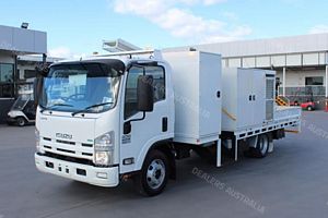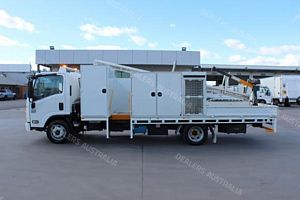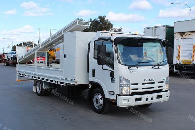 2013 Isuzu NPR 400 Tray with Crane. Tray Measures 5.0m (L) x 320mm (H) x 2.37m (W). Fitted with Drop Down Sides, Board Rack, Large Toolboxes, Water Tank, Easy Access Steps, Jarret Winch Crane, Tow Bar with 50mm Ball, Reverse Camera, Amber Beacon Lights, 140L Fuel Tank, Sunvisor, Air Conditioning, Stereo, Electric Mirrors, Power Windows, 6 Speed Manual Transmission, 155HP Isuzu Turbo Diesel Engine, Travelled 136,186kms!!