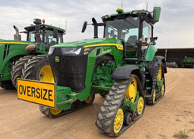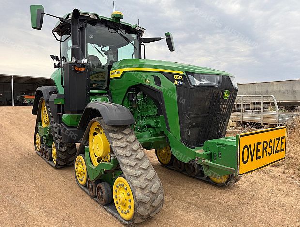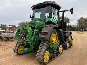 John Deere 8RX340 Tractor, 2022 model, 1570 hours, E23 transmission, 18 inch tracks front will be new rear 2 metre track centres, 18 inch tracks, new tracks to be fitted on front 40% on rear, 3 point linkage w/quick hitch, 4 remotes, 1000 rpm PTO, front weight pack, full dealer service history available, one owner, GPS receiver not included, good condition, near Condobolin NSW, includes GST