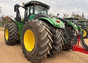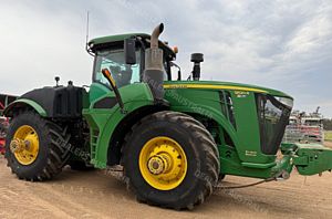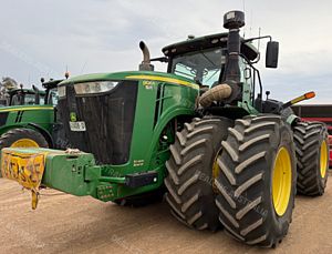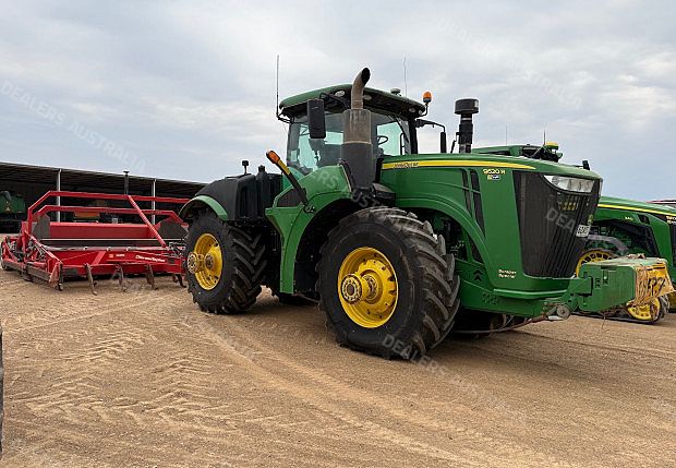 John Deere 9520R Tractor and Horwood Bagshaw Scraper, 2017 model, Scraper Special, 520 horsepower, 6163 hours, dual 650/85R38 tyres 100% rubber, 6 remotes, Hodgco Cushion Hitch, standard drawbar supplied, weight pack, dealer service history available, tractor GPS receiver not included, one owner, Horwood Bagshaw Scraper Bucket, trailing, 2017, 16 foot cut, rippers, auto lube, Precision Ag (RTK) levelling system, RTK base station and Toomey ECS system, one owner, good condition, near Condobolin QLD, includes GST
