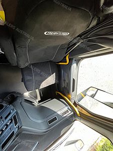FITTED WITH: TV/ MICROWAVE/ CUSTOM SLEEPER AIR/ STORAGE CABINETS/ UNDERBUNK FRIDGE/ 2 OVERHEAD UHF RADIOS/ INVERTER AND POWER PLUG UNDER PASSENGERS SEAT/ ADDITIONAL LED LIGHTING IN REAR SLEEPER/ MIRROR MOUNTED UHF ANTENNAS