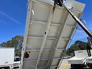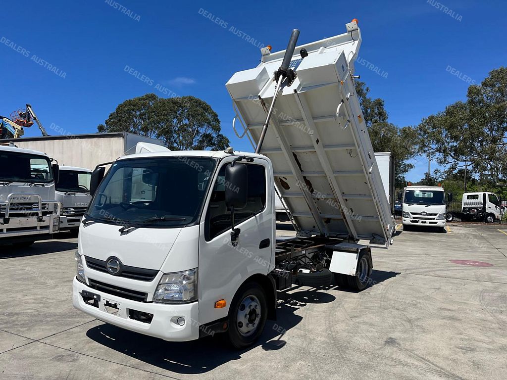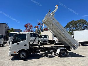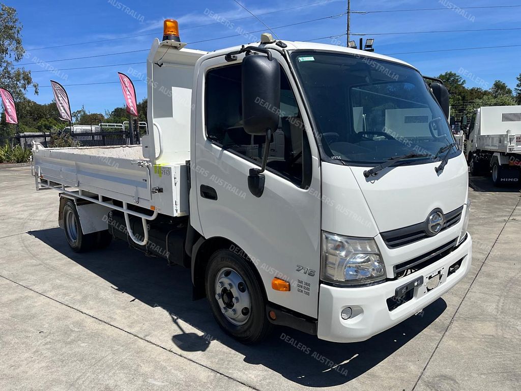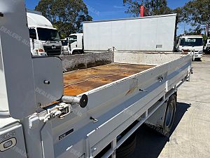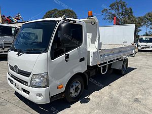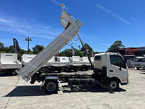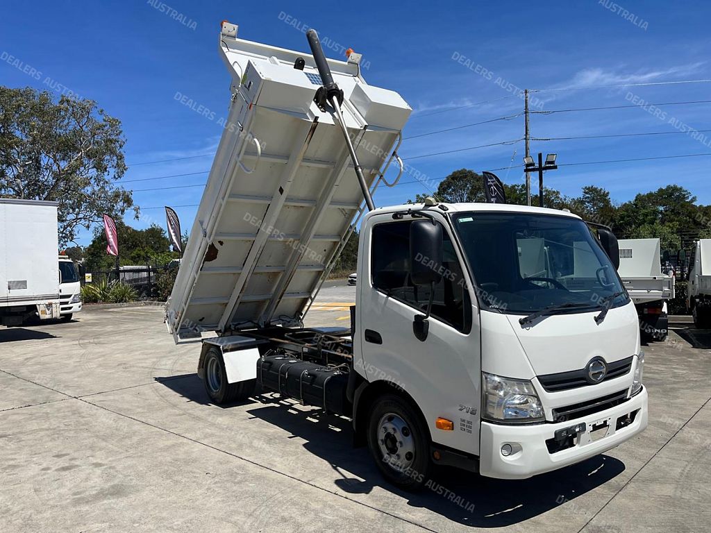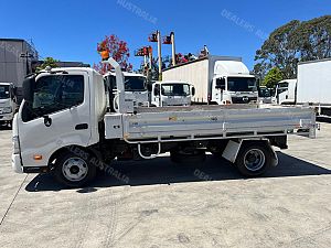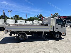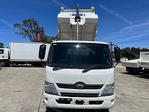 2013 Hino 300 series 716, 160Hp, Automatic transmission, Steel tipping body, External hoist, Swing tailgate, Drop sides, Tarp, Tow bar, Safety beacons, X country NSW council truck.
