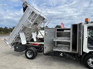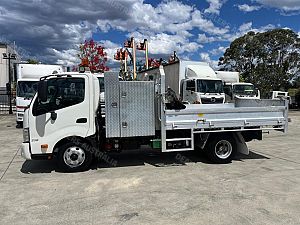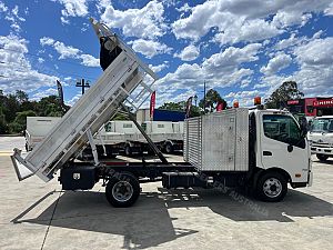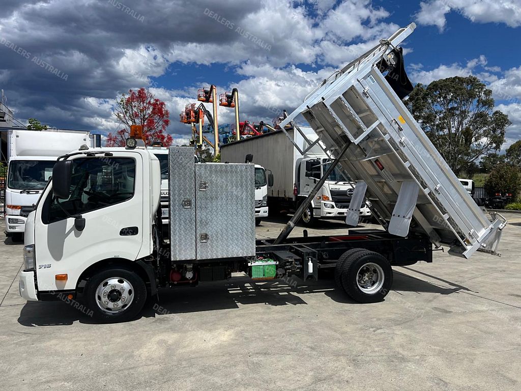 2017 Hino 300 series 716, 160Hp, Automatic transmission, Custom built alloy tipper with drop sides, Tiedown points, Swing tailgate, Tarp, Safety beacons, 2 x tool boxes, Tow bar, Reverse camera, Air compressor. X council.