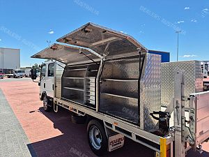 2019 Isuzu NPR75-190 AMT 4 ton Crew Cab with the Massive 190HP Powerplant coupled to a 6 Speed (Automated Manual Transmission) complete with a 4.1m Heavy Alloy Tray with Full Toolboxes down both sides and a 500kg Tommy Gate Lift at the Rear.