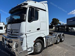 2021 Mercedes Actros 2663 6x4 Road train / B-Double prime mover, 630hp Mercedes OM473 engine, 12 speed Mercedes AMT transmission, Mercedes Hypoid drive axles on air bag suspension, alloy bull bar, Coolibar bunk cooler, integrated sleeper cabin, Jost 50mm fixed turntable, new drive guards, will be sold with SA roadworthy, ex major fleet in excellent condition