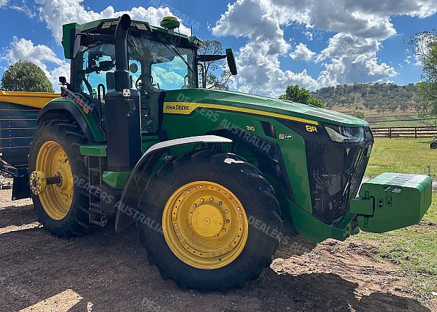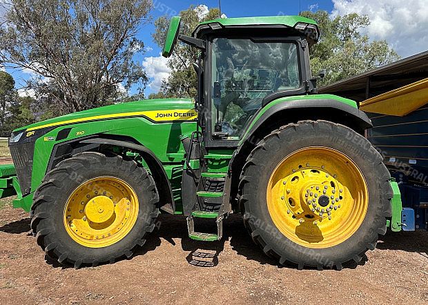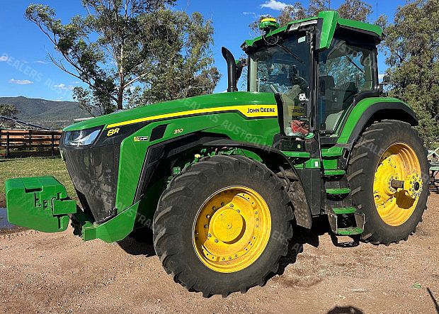John Deere 8R310 Tractor, 2023 model, 310 horsepower, 856 hours, E23 transmission, ILS suspension, 3 point linkage with quickhitch, front suitcase weights, front 480/70R34 tyres 60% rubber, rear dual 480/80R50 tyres inner 90% rubber outer 100% rubber, John Deere Starfire receiver (RTK), rear duals (unused), Standard warranty till 12/4/2026, extended powertrain transferrable warranty (till 10/4/29), one owner, good condition, near Quirindi NSW, includes GST