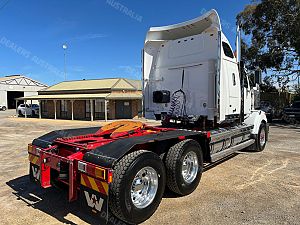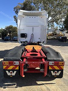 Detroit DD15 @ 560hp, 18 Speed Manual (RTLO20918B) Gearbox, Meritor RT46-160GP Rear Axles @ 4.3:1 Ratio with Front & Rear Crosslocks on Airliner AL46K Airbag Suspension, Alloy Wheels with Offsets to the Steer, Rubber Rear Guards, 2" Jost Sliding QRTT, 54" Stratosphere Sleeper with Ecowind Bunk Cooler, 2 x Rotating Beacon Lights, Quad Alloy Fuel Tanks with 1705 Litre Capacity, Alloy FUPS Bumper Bar, Auto Greaser, Draw Fridge, 2 x UHF, CD/Radio, Tidy Truck with 106 Tonne B Double/Road Train GCM.