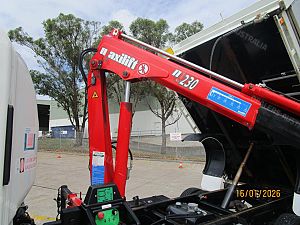 The truck is fitted with a tipping body complete with toolboxes, offering excellent practicality and storage. Mounted behind the cab is a Maxilift M230 crane, capable of lifting 500kg at its maximum reach of 4.2 metres, making loading and unloading efficient and safe.