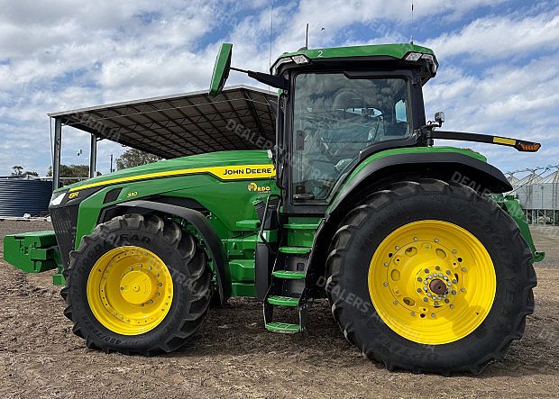 John Deere 8R310 Tractor, 2022 model, 310 horsepower, 1591 hours, ILS front suspension, IVT transmission, 1000rpm PTO, 3 point linkage w/quickhitch, 5 remotes, dual front 480/70R34 tyres 60% rubber, dual rear 520/85R46 tyres at 50%, front weight pack, rear wheel weights, Gen4 Command Centre, Autotrac activation, Starfire 6000 receiver (RTK), extended monitor, transferrable Powertrain Warranty - 5 years/2500hrs (expires 13Nov27 or 2500hrs), one owner, machine available April 2026, excellent condition, near Dalby QLD, includes GST