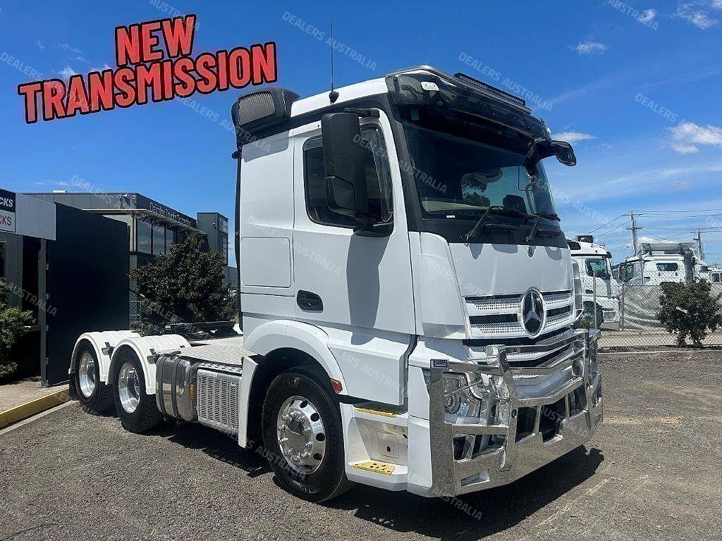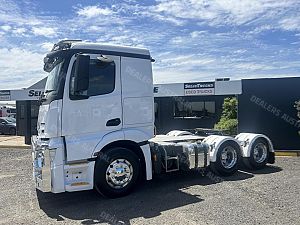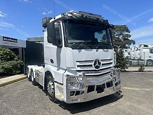 2020 Mercedes-benz actros 2653 6x4 prime mover, M-benz 530hp engine, auto transmission ** 30,000klms on new transmission ** M-benz diffs, 70 tonne b-double rated, abs, integrated sleeper cab with bunk cooler, alloy bullbar, alloy rims, ex major fleet truck in excellent cond , service history available comes with 3 months Drive-line warranty or 50,000klms & vic RWC !