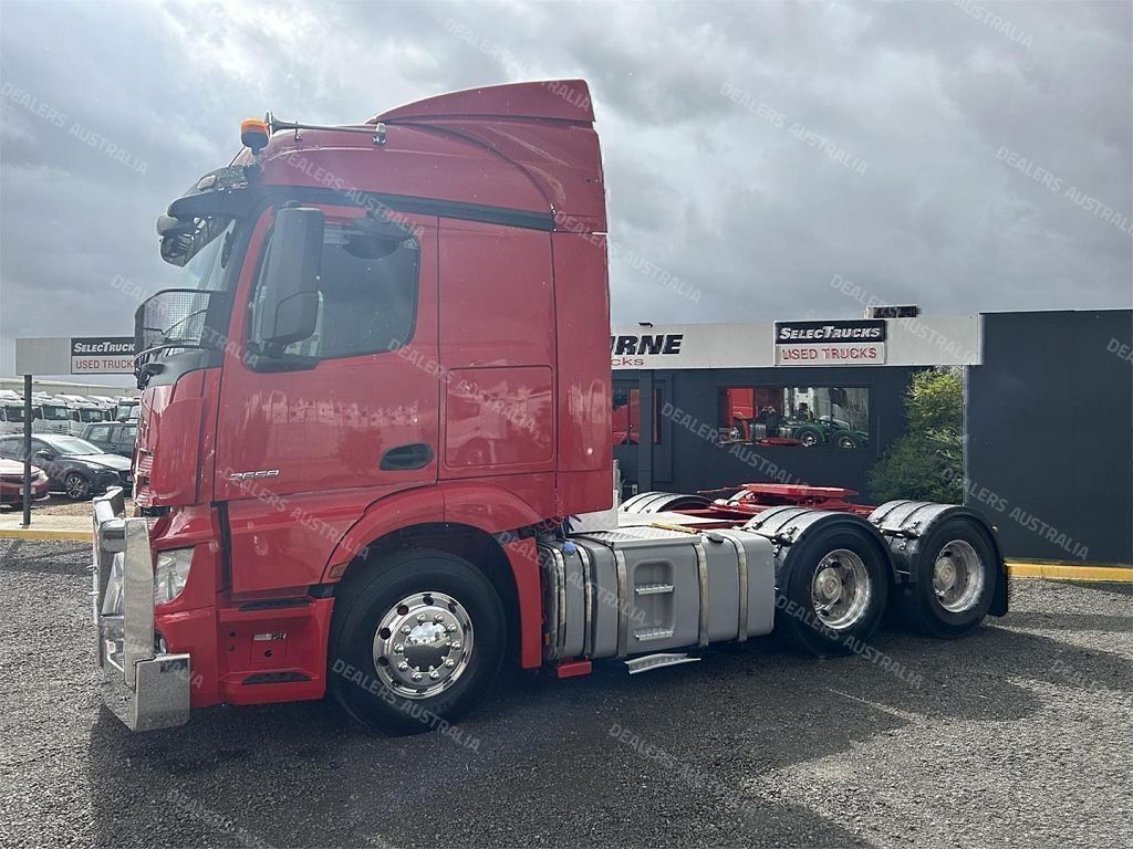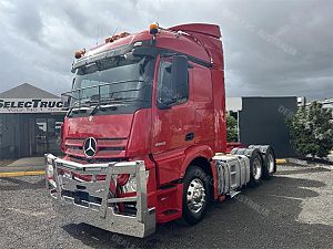 2019 Mercedes-Benz Actros 2658 6x4 prime mover, M-Benz 580hp 16ltr engine ** only 540,000klms ** auto transmission, M-benz diffs, abs, 110 tonne rated , integrated high roof sleeper cab with bunk cooler, alloy bullbar, alloy rims, race red colour, excellent cond ex fleet truck with full service history, comes with Vic RWC ! ** this truck applies with our 6 month 100,000klms select certified warranty ** Select Certified **