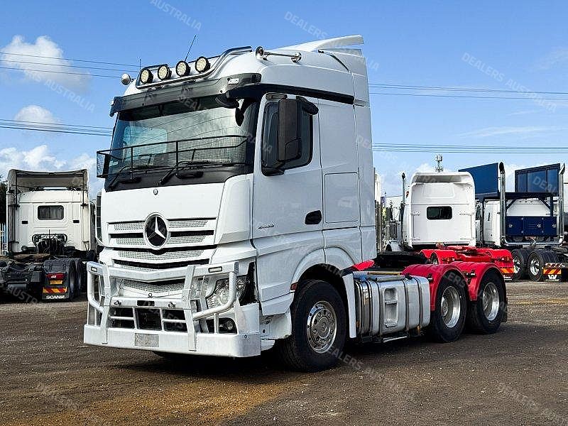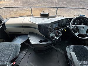 2019 Mercedes Benz 2663 6x4 Prime Mover, 630Hp Benz Engine, 12 Speed AMT Transmission, Mercedes Benz Rear Axles on Air Bag Suspension, Alloy Bull with Tow Pin, Mesh Stone Guard, Sun Visor, 4 x LED Spot Lights on Roof Bar, Aero Kit with Wings, Square Tanks, Plastic Drive Guards, Fixed QRTT, AutoClimba Bunk Cooler, Chassis Deck Plate, Air Ride Drivers Seat, Double Din Stereo Unit, A/C, Power Steering,