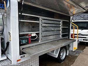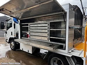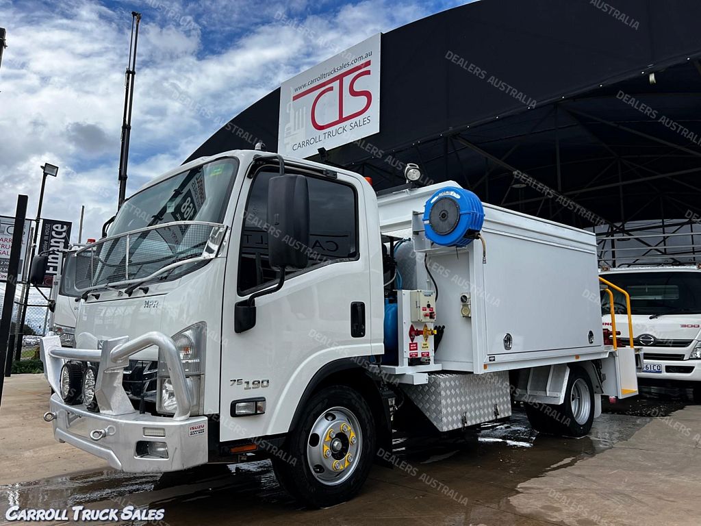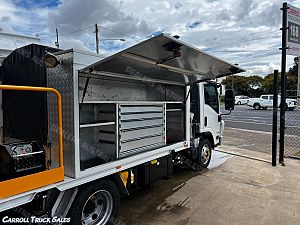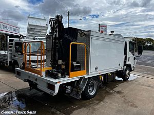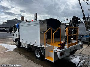 02/ 2019 ISUZU NPR 75/ 190, TURBO INTERCOOLED 190 HP, 6-SPEED MANUAL, P/S A/C. Immaculate set up ex-fleet service truck, Presents in excellent condition and drives great. Expenses haven't been spared on this one and is fitted with extras PLUS Including: Stone Guard, Floor mats, UHF Radio, Electric Brakes, Chrome alloy bulbar, Driving Lights, Towbar, Isolator Switch, Mine bar, 4x Work lights, Hiab Crane T-HIDUO 023- 1600 Kgs @ 1.5m, 520 Kgs @ 4.5m, Stabilizer Legs, Rear Vice, 2x Big above body Storage boxes, Coffin Boxes and draws both sides, Lights, peerless Diesel Air compressor, Air Hose reel, Redarc Inverter with external 240 sockets PLUS MORE!!!