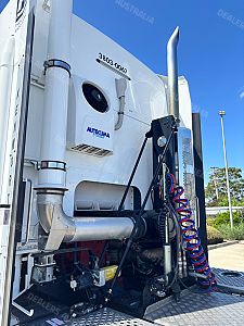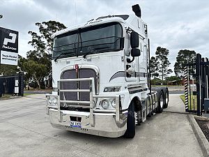 2023 Kenworth K200 Sleeper Cab P/Mover, Cummins X15 with Eaton Ultrashift automated transmission, ESP (Prime Mover) Electronic Stability Program, ABS, AIRGLIDE 460 Suspension, alloy rims, Battery disconnect switch, Battery Isolation Switch, DANA Spicer Rear Axle Ratio 4.10, JOST Ball Race Turntable, Cab Cooler, Stone Guard, ABS Drum Brakes, ISRI Drivers seat, UHF and stereo.
