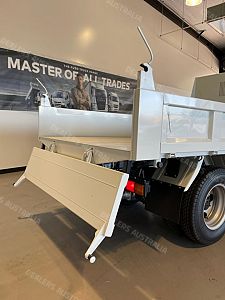 - Tipper Body Featuring: Drop Sides, Tailgate, Hydraulic Body Lock, 55 Degree Tilt Angle, compact 3050mm Length