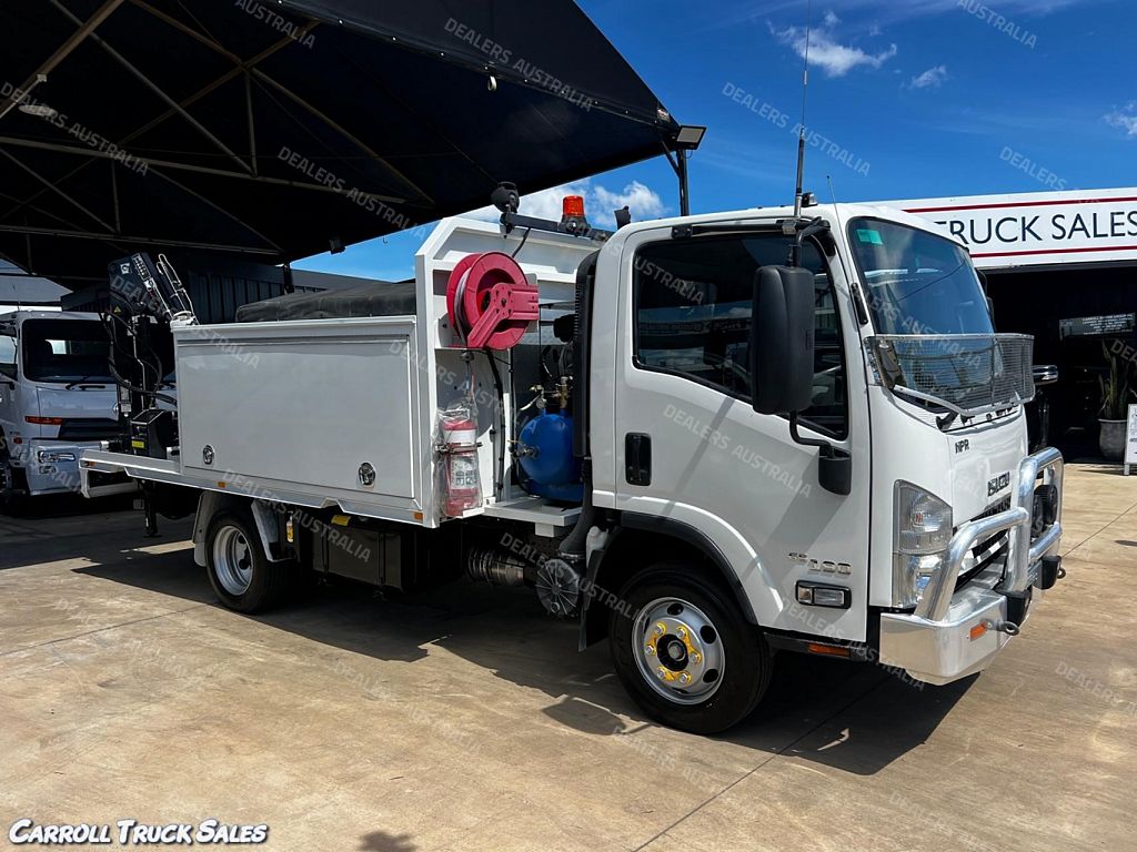 2018 ISUZU NPR 65/ 190, TURBO INTERCOOLED 190 HP, 6-SPEED MANUAL, P/S A/C. Immaculate set up ex-fleet service truck, Presents in excellent condition and drives great. Expenses haven't been spared on this one and is fitted with extras PLUS Including: Stone Guard, Floor mats, UHF Radio, Electric Brakes, Chrome alloy bulbar, Driving Lights, Towbar, Isolator Switch, Mine bar, 4x Work lights, 12 v/24v jump start points, aux batteries with charging, Hiab Crane T-HIDUO 023- 1600 Kgs @ 1.5m, 520 Kgs @ 4.5m, Stabilizer Legs, Rear Vice, 2x Big Storage boxes with draws, shelves, Lights and pull out work bench, peerless Diesel Air compressor, air hose reel, oxy Hose reel, Inverter with external 240 sockets PLUS MORE!!!