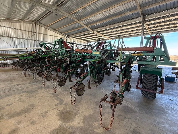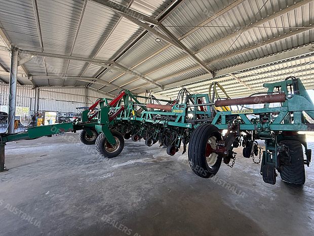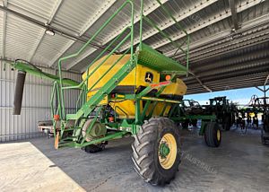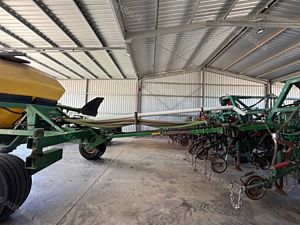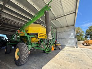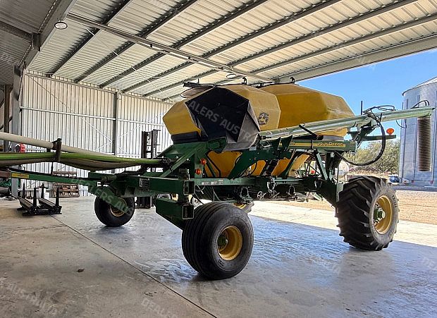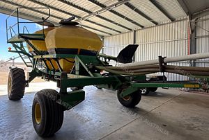 Janke Universal Planter, 12 metre bar (40ft), 5 section fold, 36 x Janke parallelogram tyne planter, hydraulic downforce and breakout, 333mm tyne spacing, Janke planting tynes and Boss Ag double disc openers, covering chains, John Deere 1910 Air Cart, trailing, 2 bin, 6800 litres, 195 bushel (75/120 split), Seedstar 2 control, load/unload auger, good condition, near Warialda NSW, includes GST