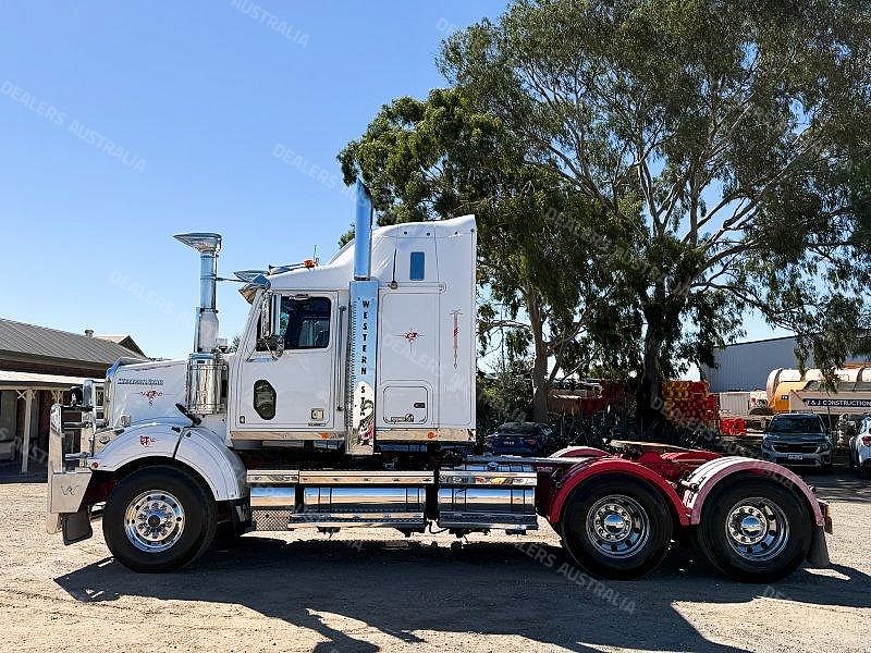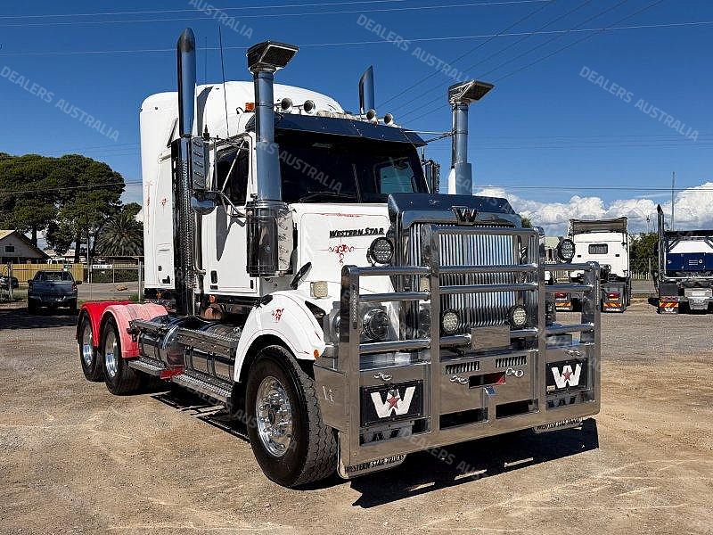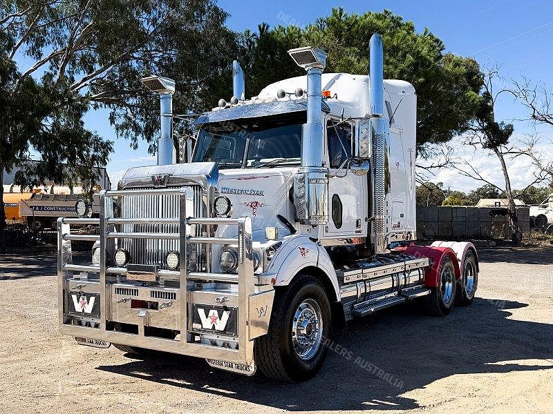 2017 Western Star 4800 6X4 Prime Mover, Detroit DD15 @ 560hp, 18 Speed Road Ranger, Meritor Drive Axles With Cross Lock, Airliner Air Bag Suspension. King Bars Polished Alloy Bull Bar (FUP), Super Singles To The Steer, LED Spot Lights, Stainless Bug Off, Stainless Drop Down Visor, Raised Stainless Air In Takes, Heaps Of Clearance Lights, Twin Stacks, Hydraulics, LED Tail Lights. ISRI Suspension Driver’ Seat, UHF Radio, Microwave, Television, Ecowind Bunk Cooler.