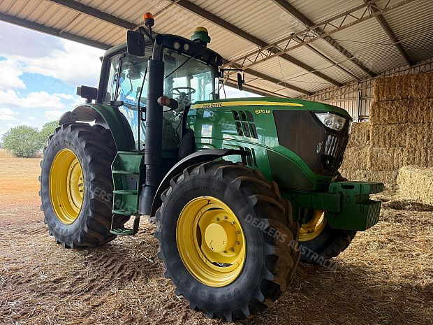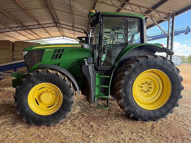 John Deere 6170M Tractor, 2016 model, 170 horseopower, 4214 hours, TLS front suspension, 3 remotes, rear inner wheel weights, rear 620/70R42 tyres 40% rubber, front 480/70R30 tyres 40% rubber, SF3000 receiver (SF1), John Deere ATU 300 steering controller, front weight pack, stored in shed, one owner, good condition, near Curlewis NSW, includes GST