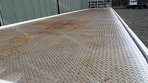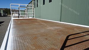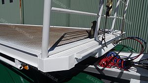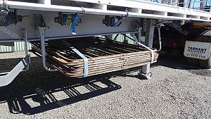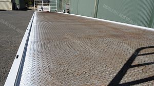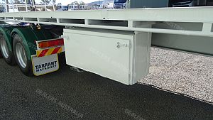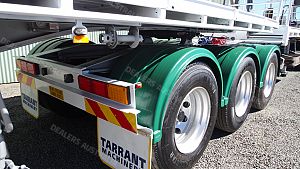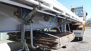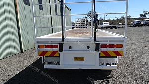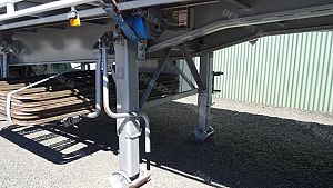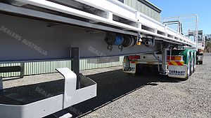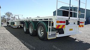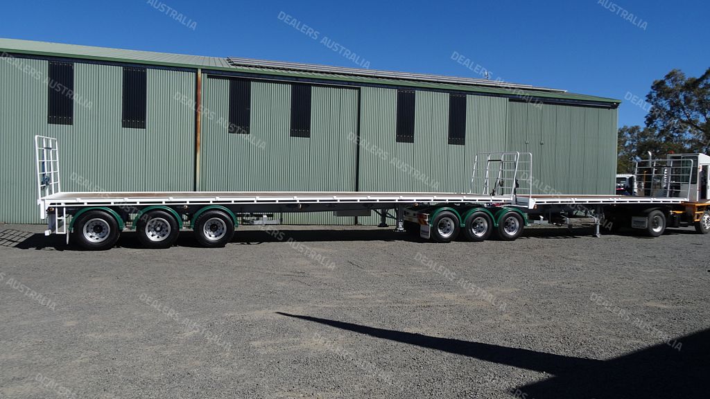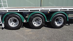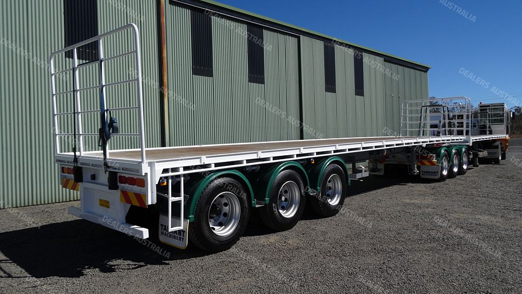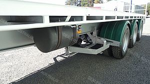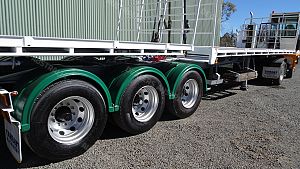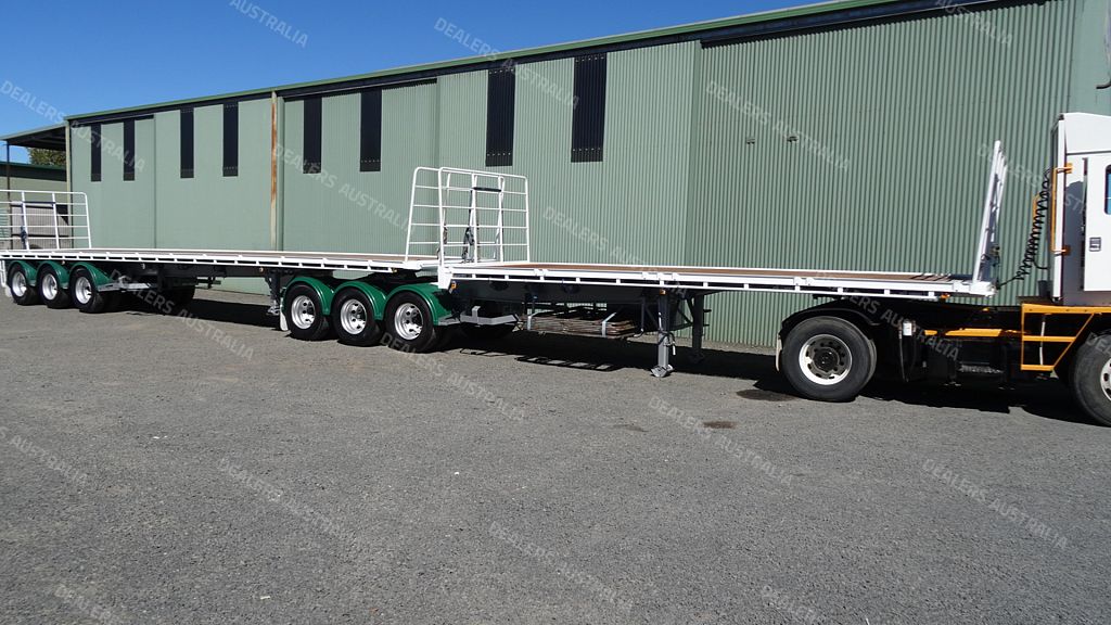 KRUEGER ST-3-38 TRI AXLE FLAT TOP 34 PALLET B DOUBLE SET, A TRAILER SPECS-YEAR-07/2003, 38000 ATM, A TRAILER HAS 7.2 M LONG FLAT DECK, FROM FRONT TO KING PIN 1450MM, FROM KING PIN TO CENTRE AXLE 7950MM, FROM CENTRE AXLE TO BACK 1900MM, FROM KING PIN TO CENTRE OF TURNTABLE IS 8.05M, B TRAILER SPECS - YEAR - 12/2003, 38000 ATM, BOLT IN KING PIN, B TRAILER HAS 13.3 M LONG FLAT DECK, FROM FRONT TO KING PIN 1500MM, FROM KING PIN TO CENTRE AXLE 9500MM, FROM CENTRE AXLE TO BACK 2650MM, BOTH HAVE BOLT ON SKID PLATES AND BOLT IN KING PINS, BOTH HAVE BPW AXLES, RUNNING 11R 22.5 ON 10 STUD STEEL RIMS, BOTH AIRBAG SUSPENSION, FROM KING PIN OF A TRAILER TO REAR OF B TRAILER IS 23.5 M, S/N - 2206, PRICE - $69900.00 INC GST, LOCATED IN ARMIDALE
