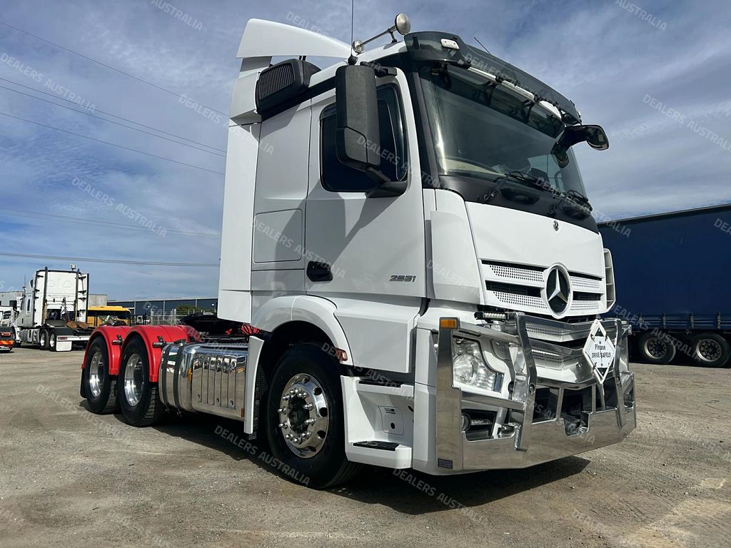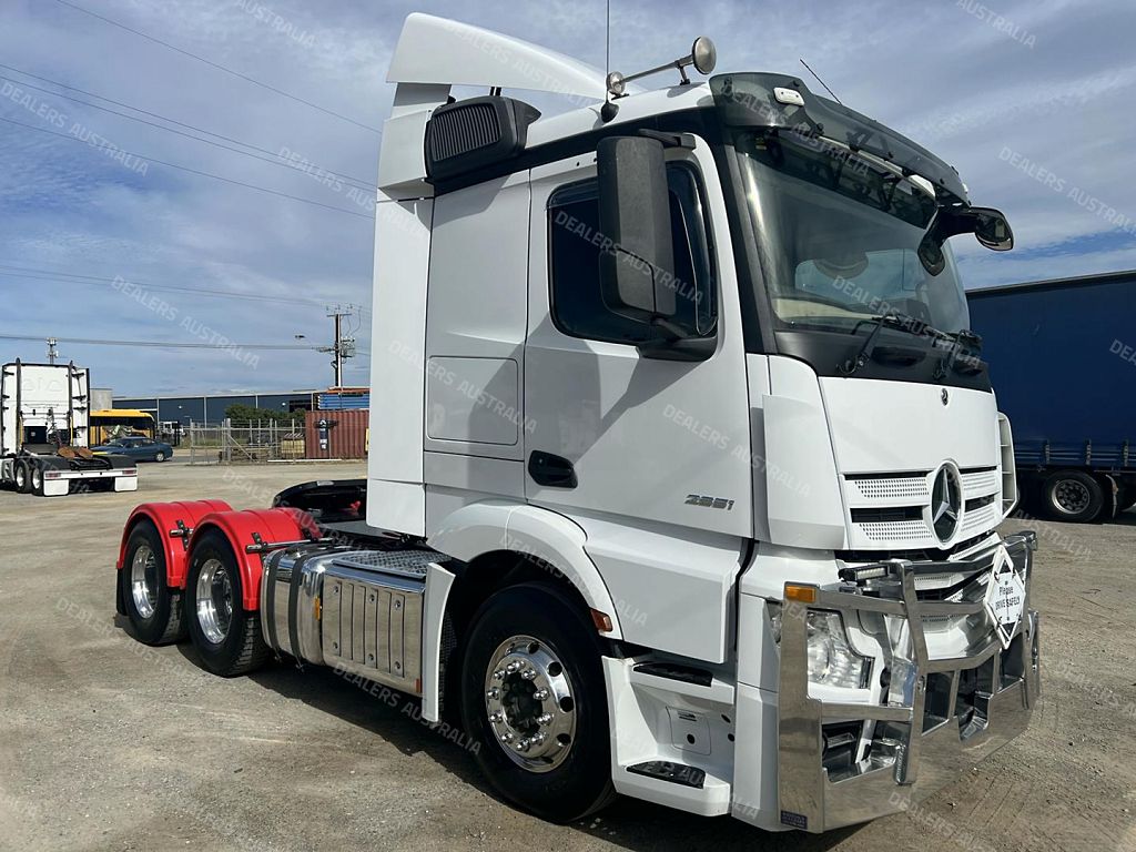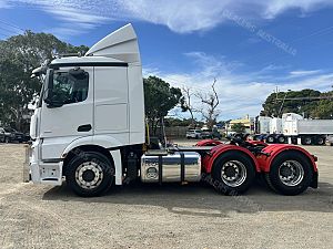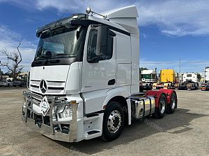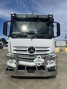 2019 Mercedes Benz Actros 2651 6x4 prime mover,510hp 12.8 ltr Mercedes Benz eng with 12 spd Powershift3 AMT trans,M/Benz Hypoid rear axles on 8 bag air bag susp,Low roof sleeper cab with aerofoil,Alloy wheels and FUPS bull bar,Disc brakes with ABS and EBS,Diff and x locks,2" fixed QRTT,Hold 860 ltrs of fuel,Draw fridge,Rad/cd,UHF,Alloy walkplate,Plastic circle gaurds,3.95 mtr take 4 mtr tip body.70 Ton B/Double truck is in exellent condition and has only done 333899 kms.