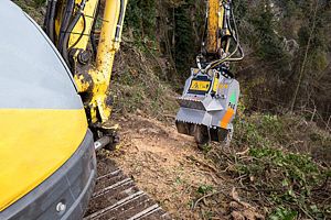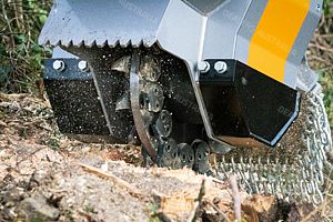 Are you looking for a stump cutter to use with your 75-120 hp skid steer? FAE offers the SCL/SSL series, which stands out for its strength and compact size, making the vehicle very easy to handle. Its fixed-tooth rotor shreds stumps with a laterally swinging head, up to 50 cm deep.